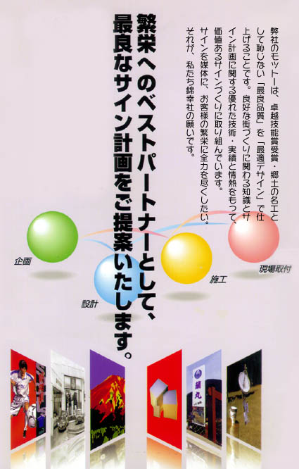 屋内外美術広告、ビジュアルサイン、ネオン電装、標識看板、イベントサイン、展示装飾